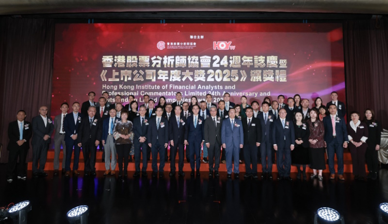 香港,2025年12月17日 /桦讯通/ -- 香港股票分析师协会(「协会」或「本会」)联同香港HOY TV共同主办香港股票分析师协会24周年志庆暨第14届上市公司年度大奖2025颁奖礼,于12月11日在香港君悦酒店宴会厅隆重举行。