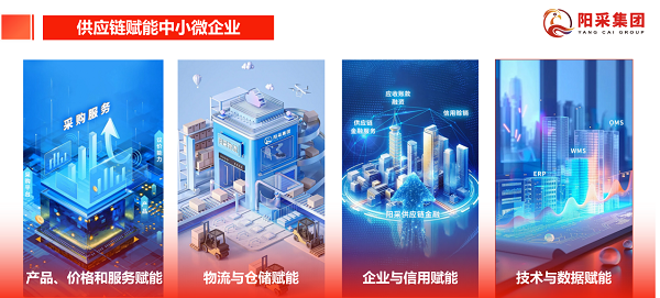 技术与数据赋能实现公平竞争:将阳采与大型企业在数字化采购交付过程中沉淀的ERP、WMS、OMS等系统能力,打造成SaaS化产品,提供给中小微企业使用。同时,共享需求预测、市场洞察等数据,帮助中小微企业开发新品、精准排产和备货。这一做法实现了“供应链民主化”,极大地降低了中小企业享受高水平供应链服务的门槛。