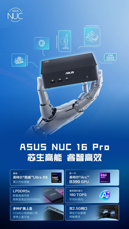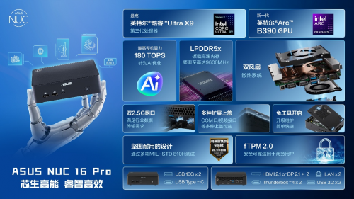 酷睿Ultra加持+全面进化!华硕NUC 16 Pro迷你主机:180TOPS AI算力颠覆体验