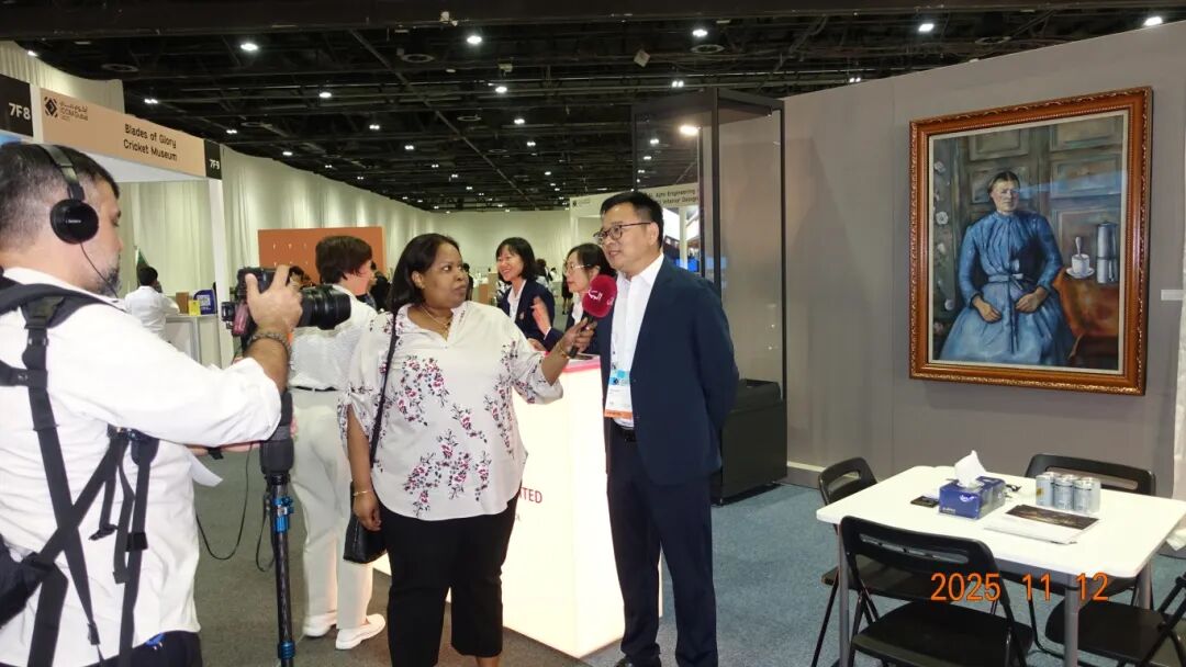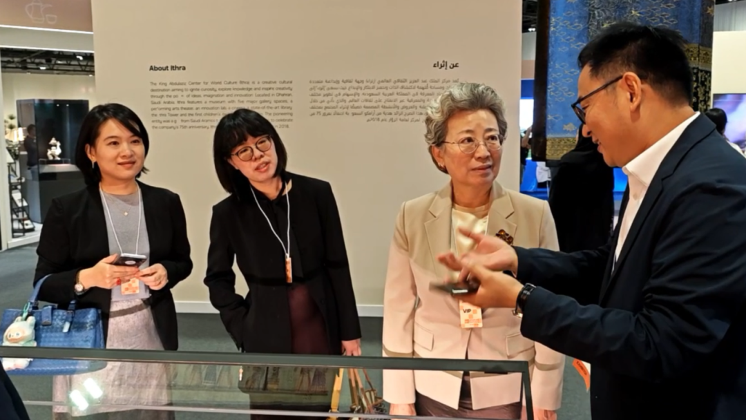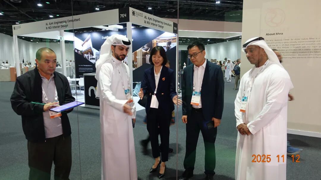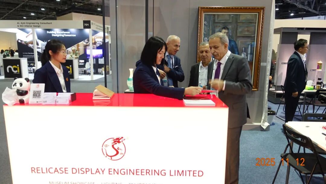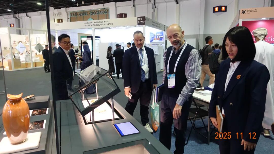 三项展柜创新核心技术,融合美学、功能、实操,以鲜活“未来感”呼应大会主题,开启文博展陈新天地,吸引了世界客商、各国专 家。中国驻迪拜总领事欧渤芊女士也莅临克里克展位,与克里克一行热情交谈。